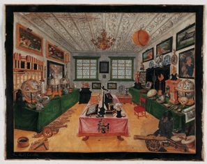 Joseph Arnold, Die Kunstkammer der Regensburger Eisengroßhändler-Familie Dimpfel, 1668 (?), Deckfarben auf Pergament, 14,9 x 19,1 cm, Ulmer Museum